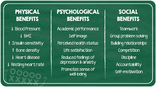 Sports can help you reduce stress. In a 2022 study published in PLOS ONE they found that students who participated in teams improved their mental health compared to students who didn’t participate in sports. Healthy competition has been shown to help students be more direct with their focus and attention. The study also showed that students who didn’t participate in sports experience aggressive behavior and attention problems or anxiety and depression. The study below from sports and fittness shows more students participating in sports.