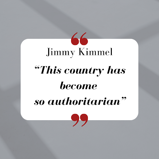 Fans flooded the streets in protest, demanding that Jimmy Kimmel Live! Be brought back on air. Some signs read “Jimmy Kimmel said the truth,” “Protect the First Amendment,” and “Stop Enabling Fascism.” Disney attempted to silence Kimmel, but failed. His show was restored on September 23, 2025. The amount of attention this scandal received was outrageous. People from all over the world reached out to support him. Kimmel even joked, “ The guy in Germany offered me a job. Can you imagine? This country has become so authoritarian, the Germans are like, ‘come here’.” But behind these jokes, there is a serious message. America isn’t as free as it claims to be. We are being forced to defend our basic rights when they should already be guaranteed. We still have not set a clear line between freedom of speech and hate speech. Kimmel is very grateful for everyone who used their voice and protested so his could be heard. His gratitude isn’t only towards getting his show back but also towards people standing up for our freedom of speech.